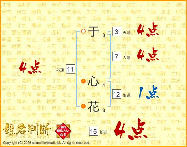 于心花さんの人運は7画の4点!