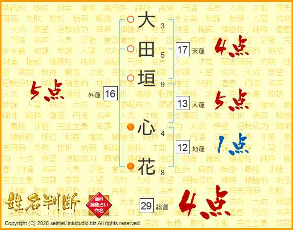 大田垣心花さんの総運は29画の4点!