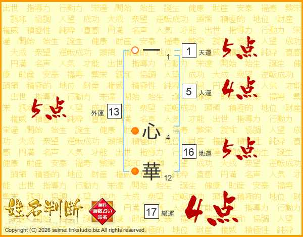 一心華さんの総運は17画の4点!