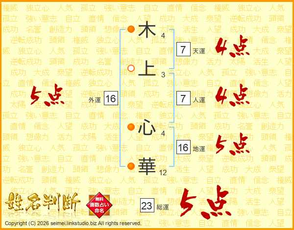 木上心華さんの外運は16画の5点!