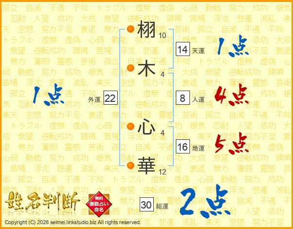 栩(10画)木(4画) 心(4画)華(12画)