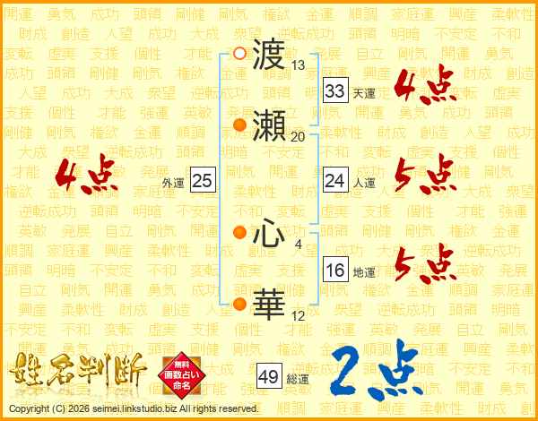 渡瀬心華さんの総運は49画の2点!