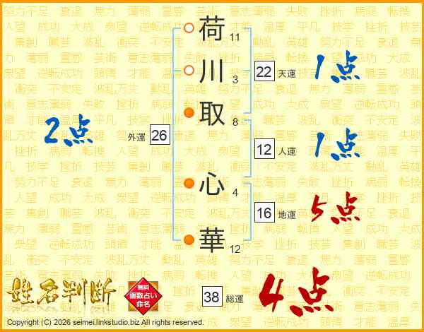 荷川取心華さんの総運は38画の4点!