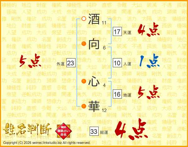 酒向心華さんの総運は33画の4点!