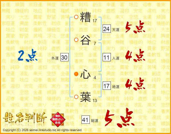 糟(17画)谷(7画) 心(4画)葉(13画)