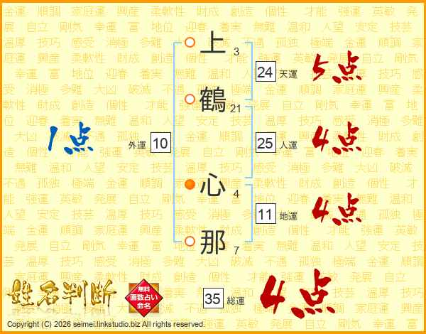上鶴心那さんの総運は35画の4点!