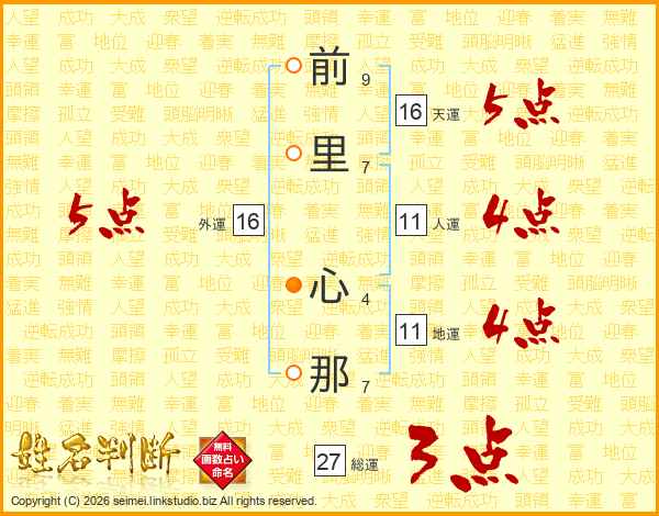 前里心那さんの天運は16画の5点!