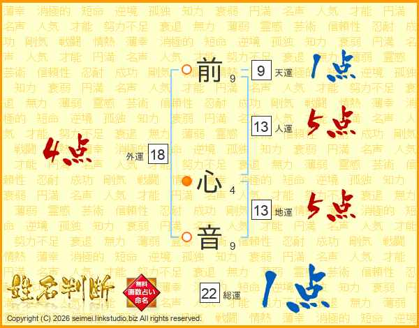 前心音さんの外運は18画の4点!