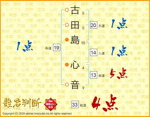 古田島心音さんの総運は33画の4点!