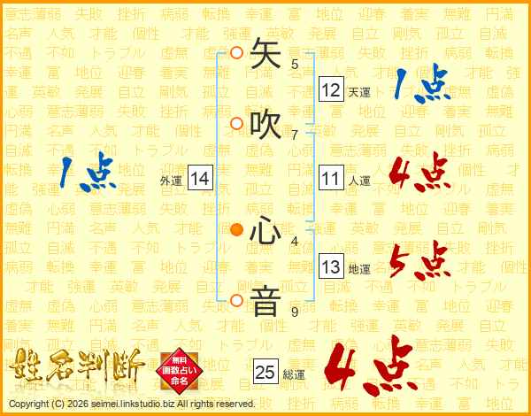 矢吹心音さんの総運は25画の4点!