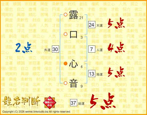 露口心音さんの天運は24画の5点!