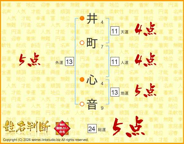 井(4画)町(7画) 心(4画)音(9画)