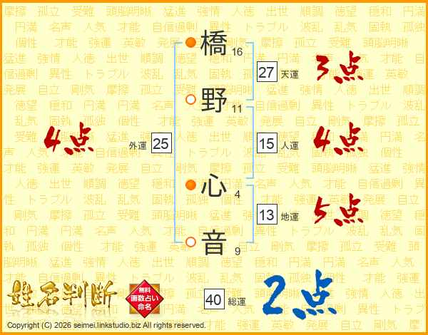 橋野心音さんの総運は40画の2点!