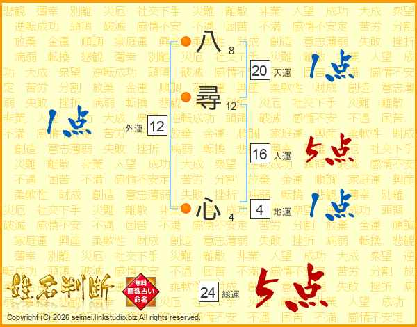 八尋心さんの総運は24画の5点!
