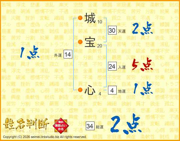 城宝心さんの総運は34画の2点!