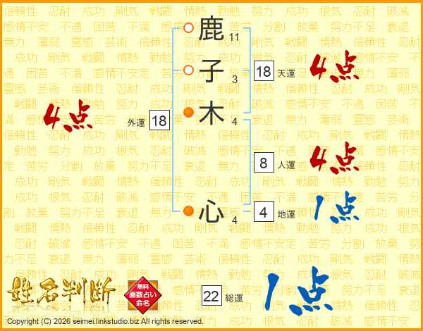 鹿子木心さんの天運は18画の4点!
