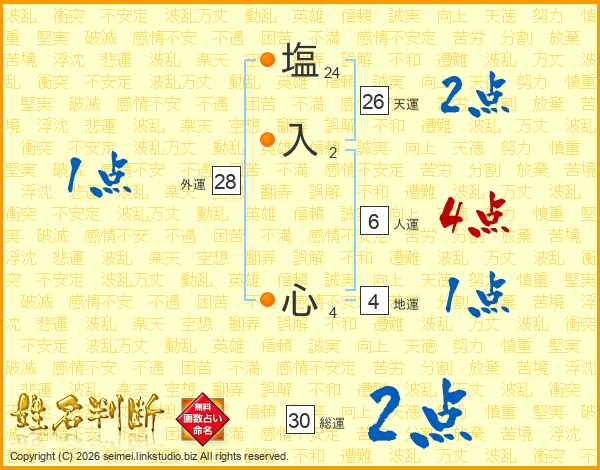 塩(24画)入(2画) 心(4画)