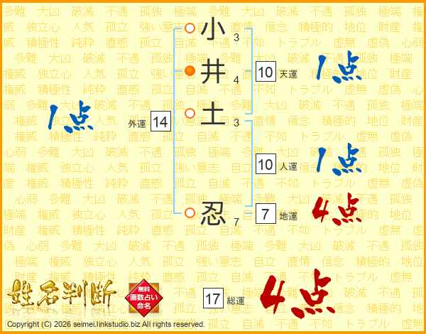 小井土忍さんの総運は17画の4点!