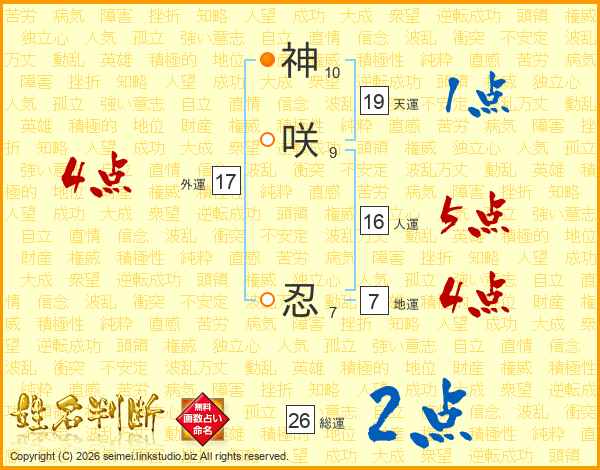 神咲忍さんの総運は26画の2点!