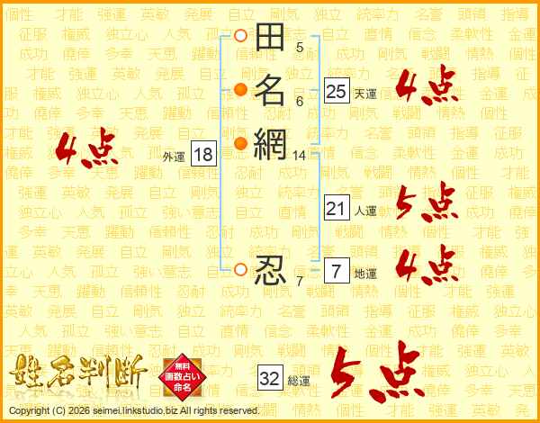 田名網忍さんの総運は32画の5点!