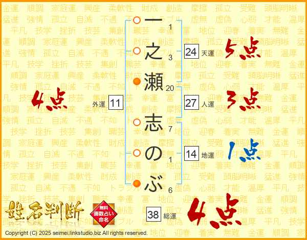 一(1画)之(3画)瀬(20画) 志(7画)の(1画)ぶ(6画)