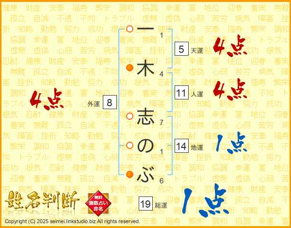 一木志のぶさんの人運は11画の4点!