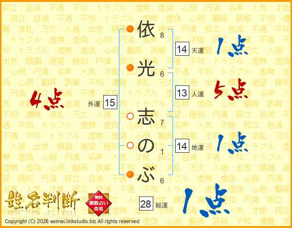依光志のぶさんの総運は28画の1点!
