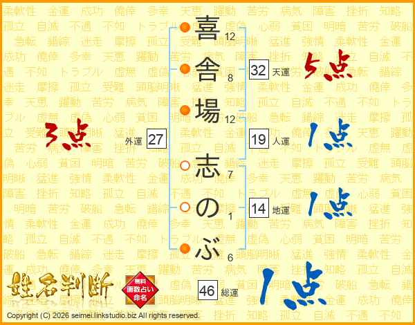 喜舎場志のぶさんの総運は46画の1点!