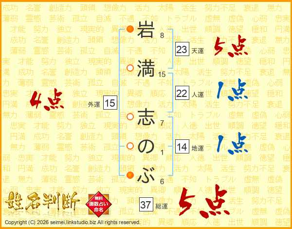 岩満志のぶさんの総運は37画の5点!