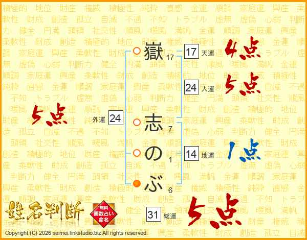 嶽(17画) 志(7画)の(1画)ぶ(6画)