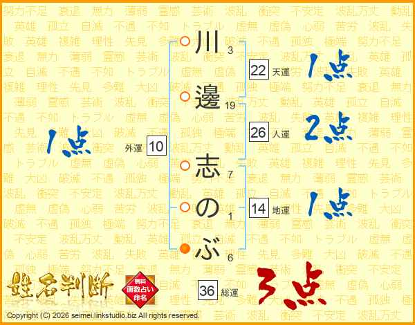 川邊志のぶさんの人運は26画の2点!