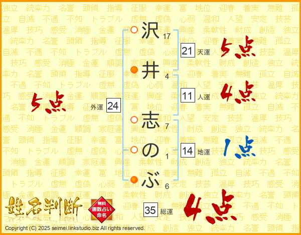 沢井志のぶさんの総運は35画の4点!