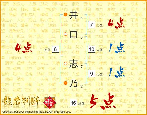 井口志乃さんの総運は16画の5点!