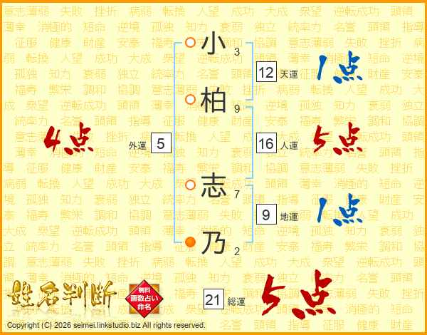小(3画)柏(9画) 志(7画)乃(2画)