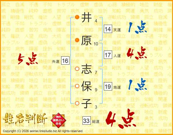 井原志保子さんの総運は33画の4点!