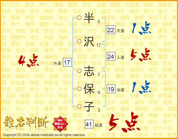 半沢志保子さんの総運は41画の5点!