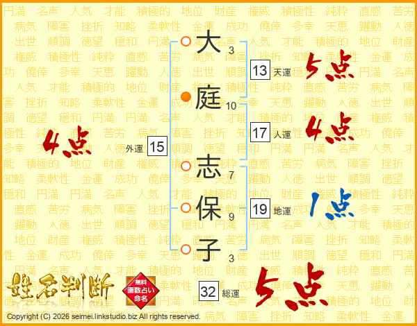 大庭志保子さんの総運は32画の5点!