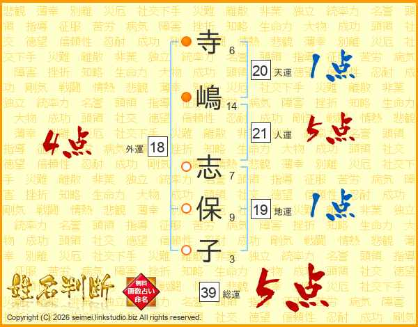 寺(6画)嶋(14画) 志(7画)保(9画)子(3画)