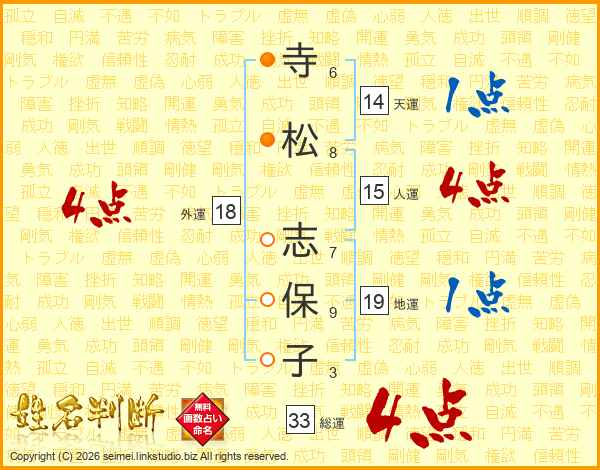 寺(6画)松(8画) 志(7画)保(9画)子(3画)