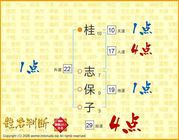 桂志保子さんの総運は29画の4点!