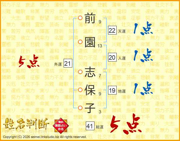 前園志保子さんの総運は41画の5点!