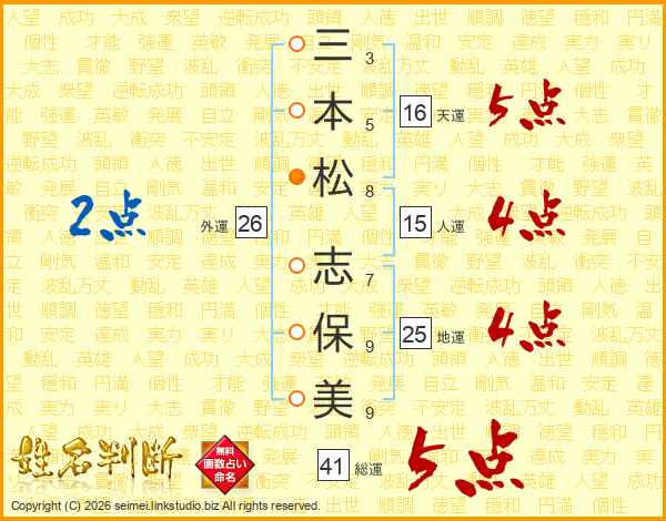 三(3画)本(5画)松(8画) 志(7画)保(9画)美(9画)