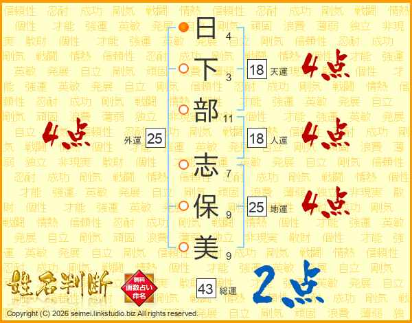 日(4画)下(3画)部(11画) 志(7画)保(9画)美(9画)