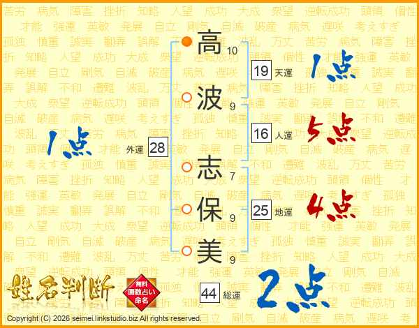 高(10画)波(9画) 志(7画)保(9画)美(9画)