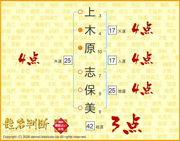 上木原志保美さんの天運は17画の4点!