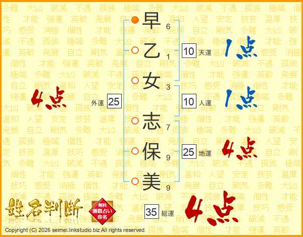 早乙女志保美さんの総運は35画の4点!