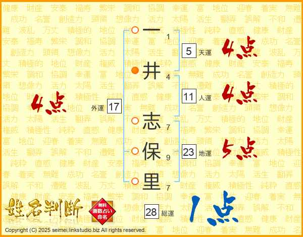 一(1画)井(4画) 志(7画)保(9画)里(7画)