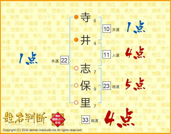 寺井志保里さんの総運は33画の4点!