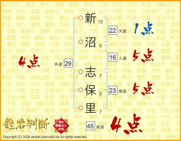 新沼志保里さんの総運は45画の4点!