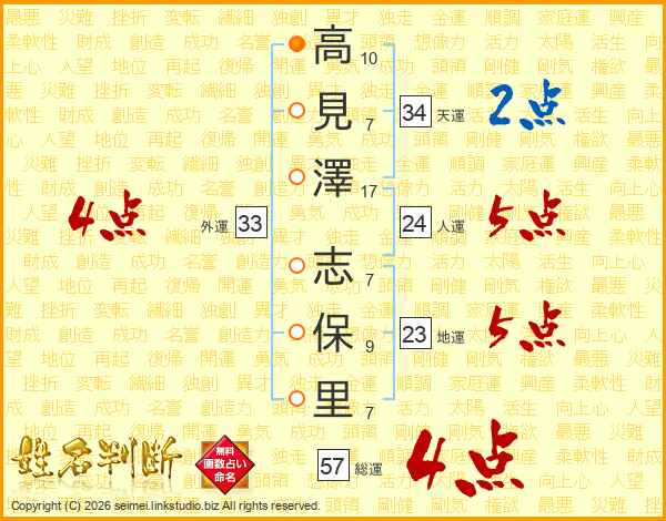 高見澤志保里さんの総運は57画の4点!
